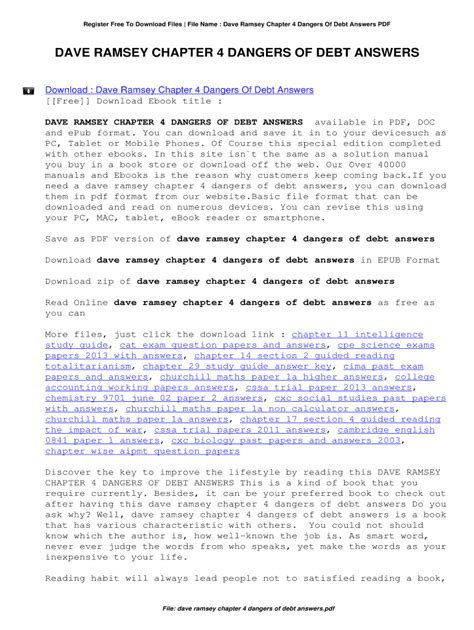 Dangers Of Debt Chapter 4 Answers Doc By Click Button. Dangers Of Debt Chapter 4 Answers it’s easy to recommend a new book category such as Novel, journal, comic, magazin, ect. You see it and you just know that the designer is also an author and understands the challenges involved with having a good book. You can easy klick for detailing book and you can read it online, even you can download it
